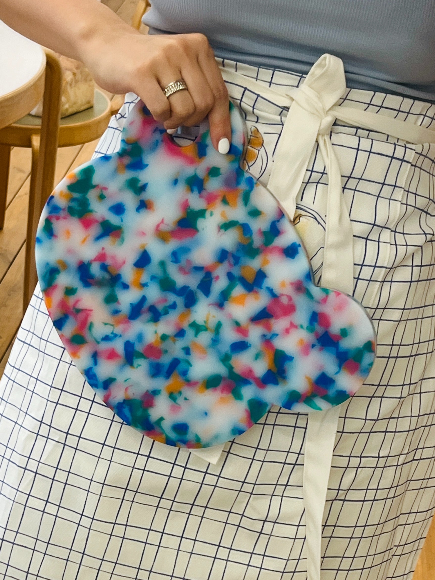 미모 도마는 제작 및 가공 과정 특성 상, 실 스크래치, 샌딩 자국, 컬러칩 잔여물 혼입 현상이 발생합니다. 이는 불량이 아닌 자연스러운 현상으로, 이와 관련한 단순 변심 반품 시 왕복 배송비가 발생합니다. 특히 컬러 혼입은 밝은 색상의 제품 일수록 눈에 띄므로 예민하신 분들께서는 하단 상품 설명의 사진을 참고하여 충분히 고려하신 뒤 신중한 구매 부탁 드립니다.